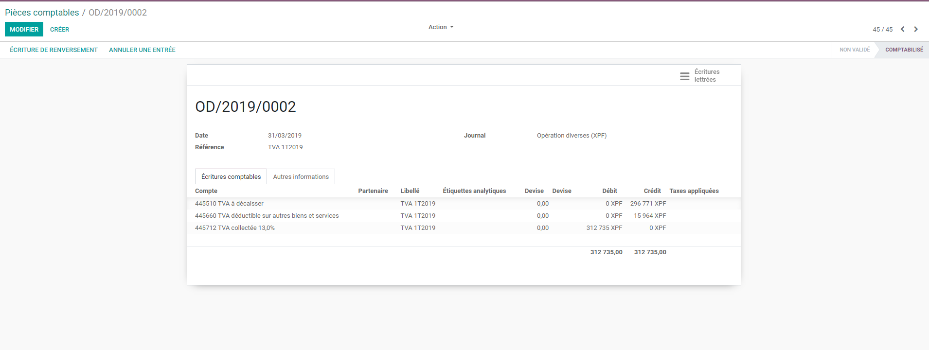 En pj une capture d’écran de l’écriture passée pour la déclaration de TVA