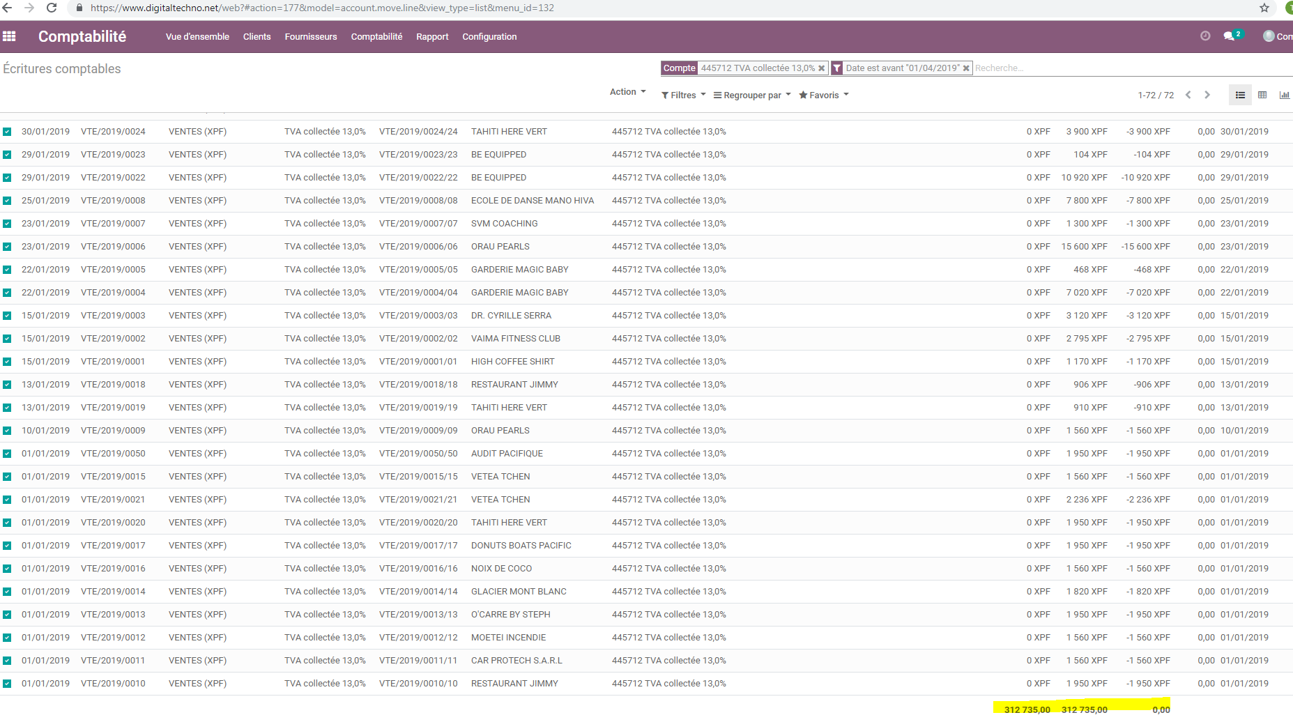 Je reviens vers toi pour la déclaration TVA, je n'ai pas bien compris les écritures a passer. Je t'ai mis en pièce-jointe la déclaration TVA. J'ai fait un virement bancaire de 296 771 CFP. Pourrais-tu passer l'écriture st ? Et je regarderai comment faire pour les prochaines.